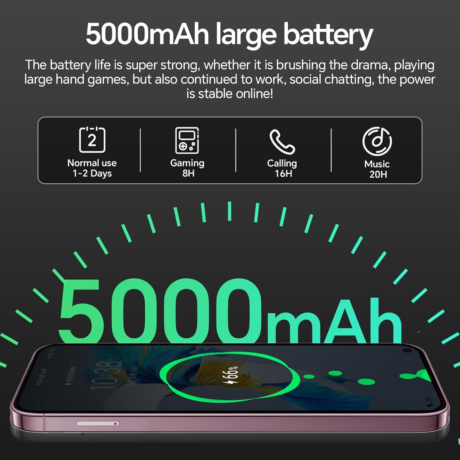 【5000mAh large battery】 The cell phone is equipped with a large 5000mAh battery, saying goodbye to battery anxiety. When you are still worrying about batteries, please choose it! Trust me, you don't need to charge it all the time, because its battery is very big enough for you to use, and it is enough to meet your daily needs! you can immerse yourself in everything this phone has to offer without constantly worrying about charging. Whether you're on a long road trip, exploring new places, or just making it through a busy day at work, this powerful battery ensures your smartphone stays charged when you need it most.