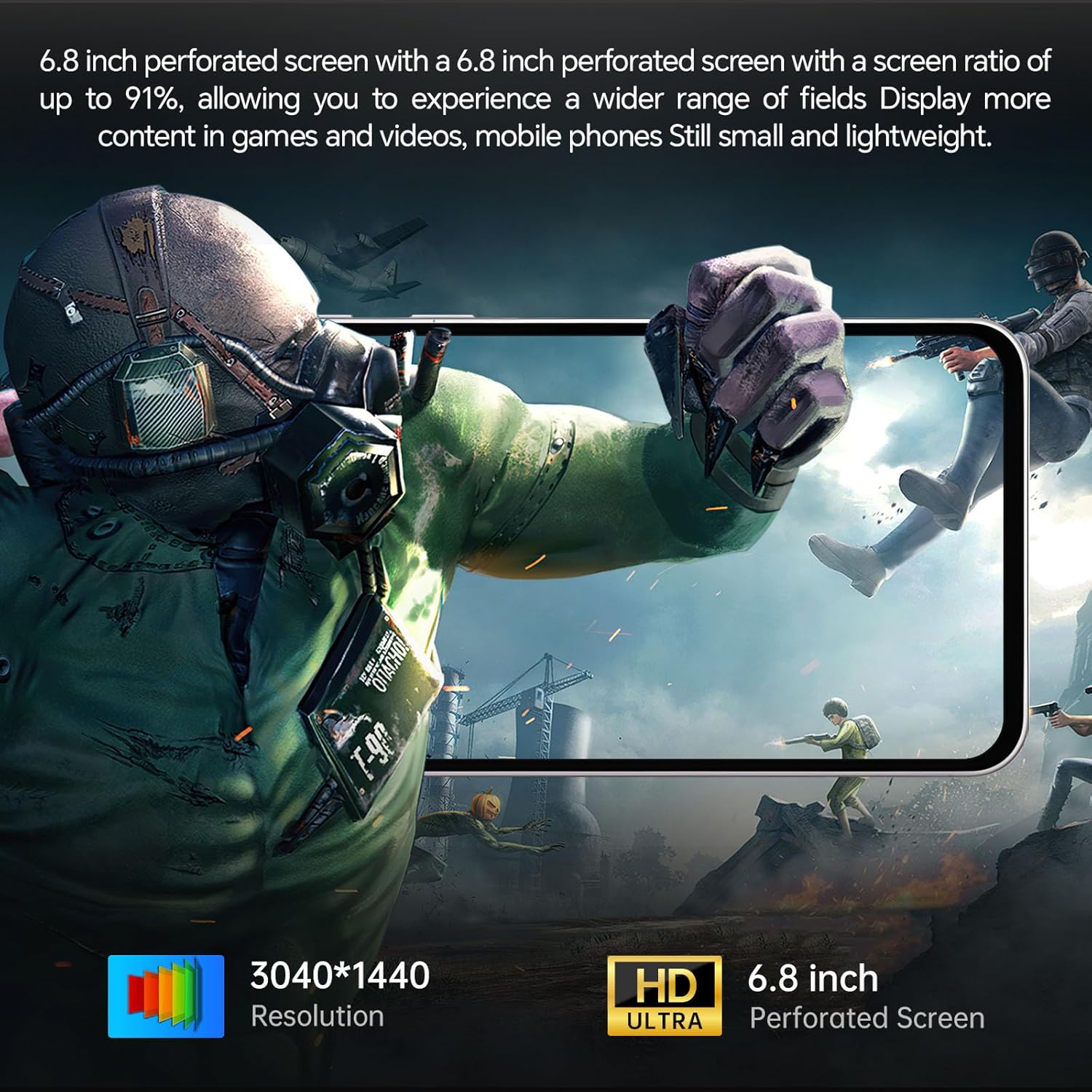 【6.8 inch 120Hz Display】 The smartphone is equipped with a 6.8 inch large screen with a comfortable brightness, delicate and rich color vision, so that you can clearly read the content even in sunlight. The silky smooth operating feel with the large HD screen makes it easy to have a peak experience whether you're playing a game or watching a movie.