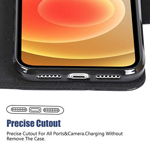 [CONVENIENT] – Easy access To All Buttons,Camera,speaker and connector, This iPhone 12 and iPhone 12 Pro flip case has 4 card slots and a pocket help you store ID card, Driving license, credit cards and several cash,the strong magnet stay closed to keep your belongings security.